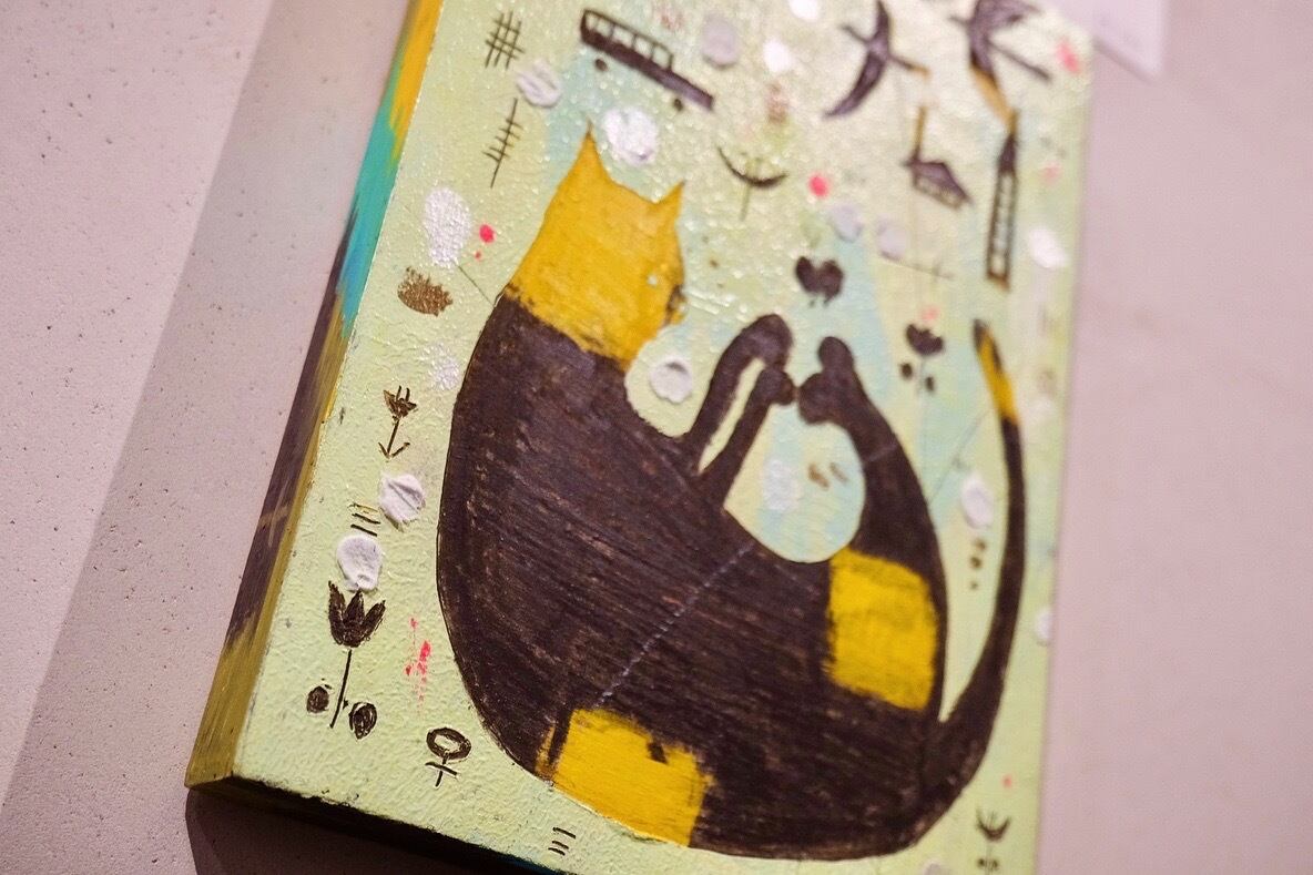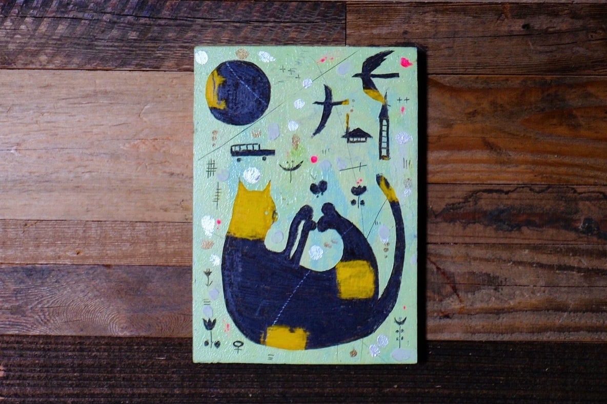 使用画材:木製パネル、アクリルガッシュ、クレパス