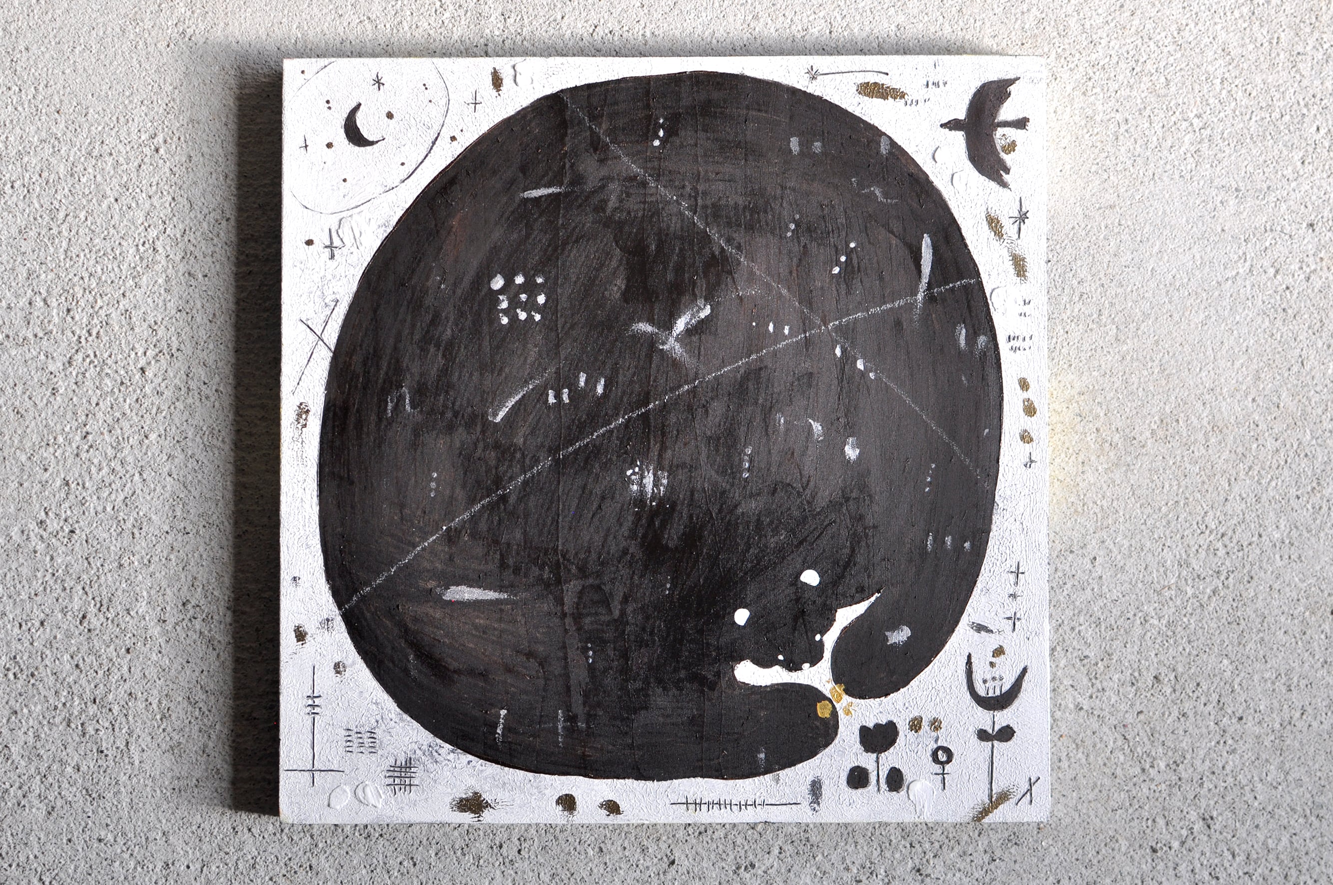 使用画材:木製パネル、アクリルガッシュ、クレパス