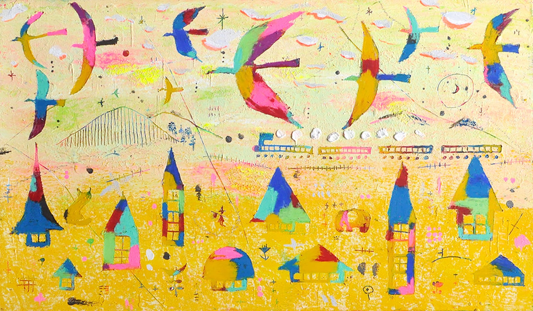 使用画材:木製パネル、アクリルガッシュ、クレパス