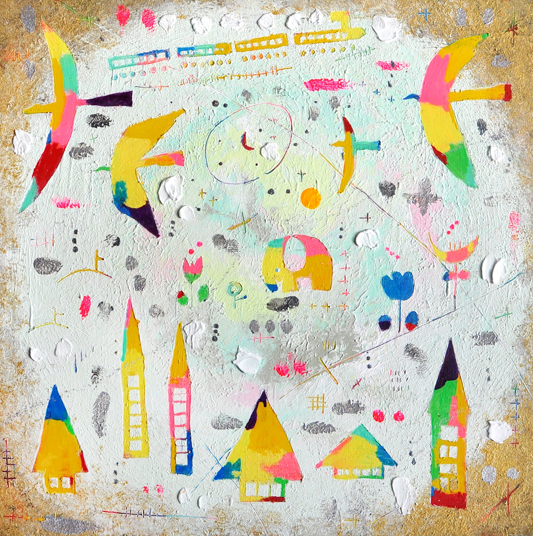 使用画材:木製パネル、アクリルガッシュ、クレパス