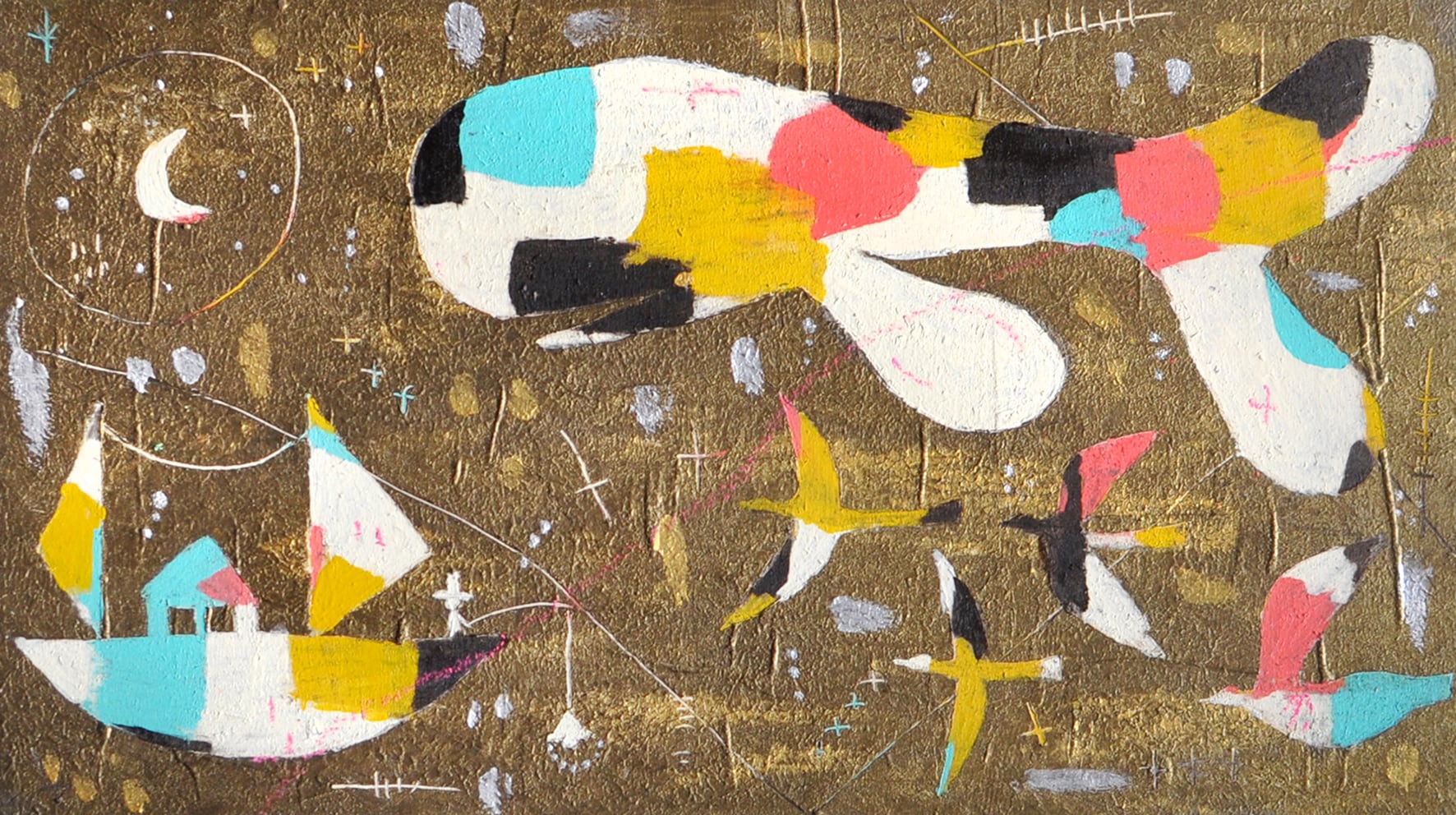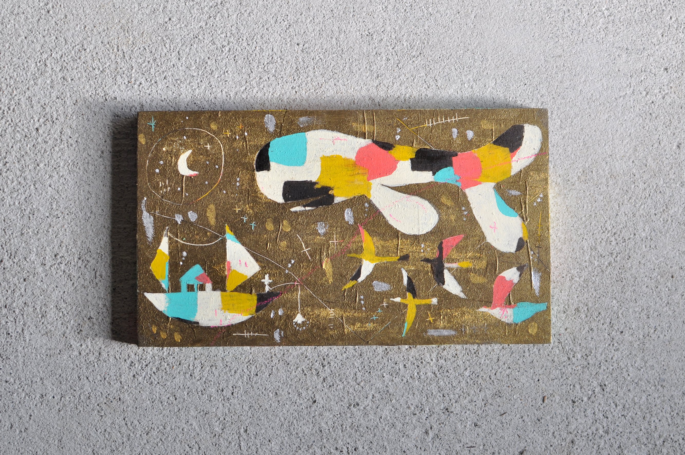 使用画材:木製パネル、アクリルガッシュ、クレパス