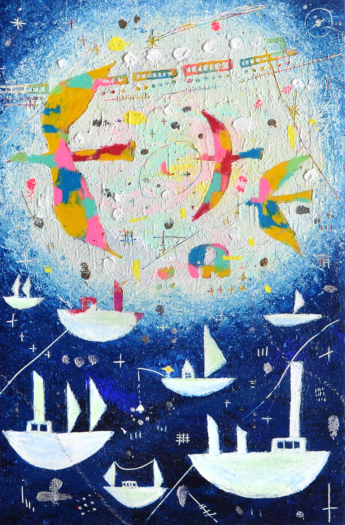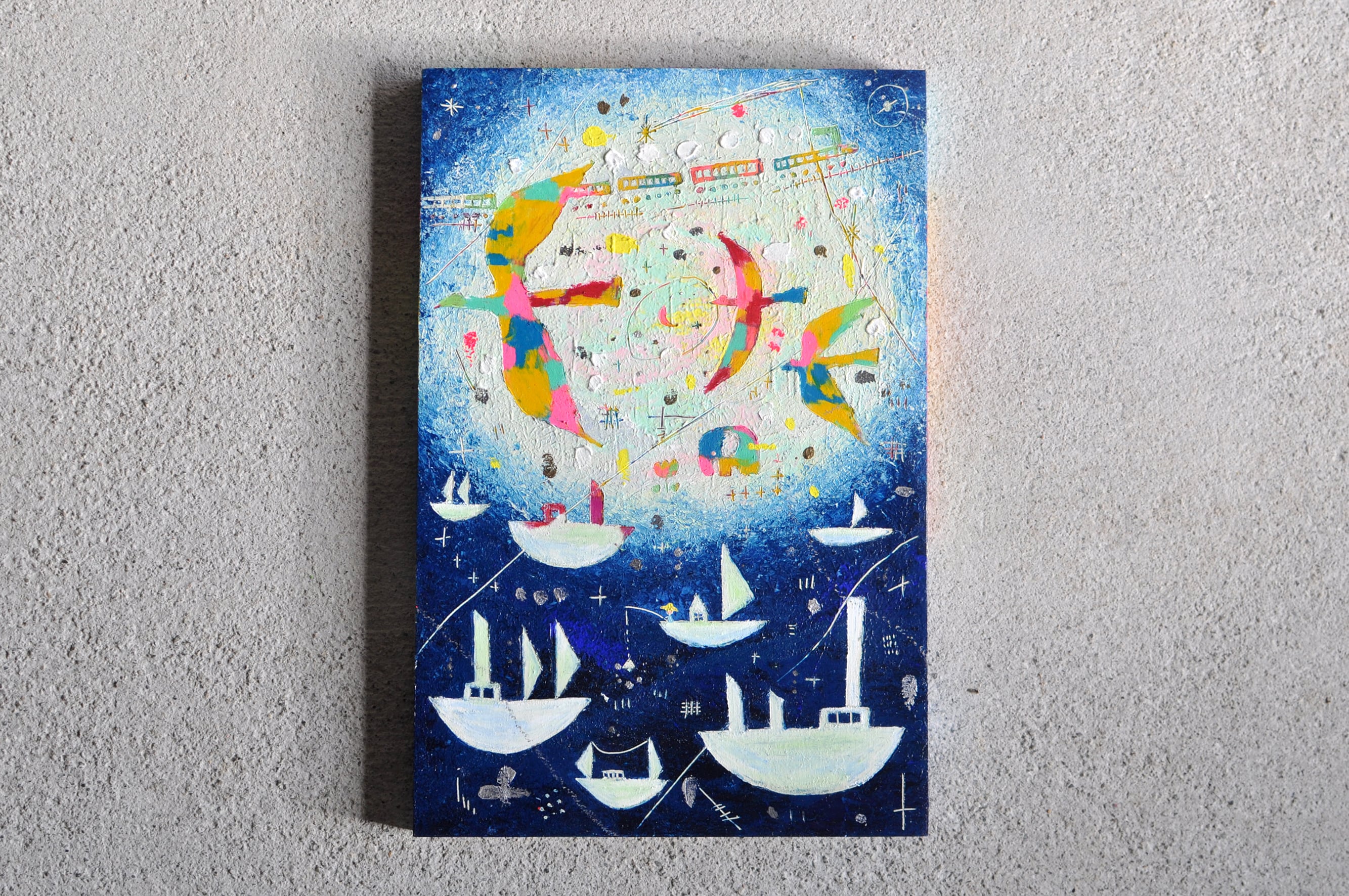 使用画材:木製パネル、アクリルガッシュ、クレパス