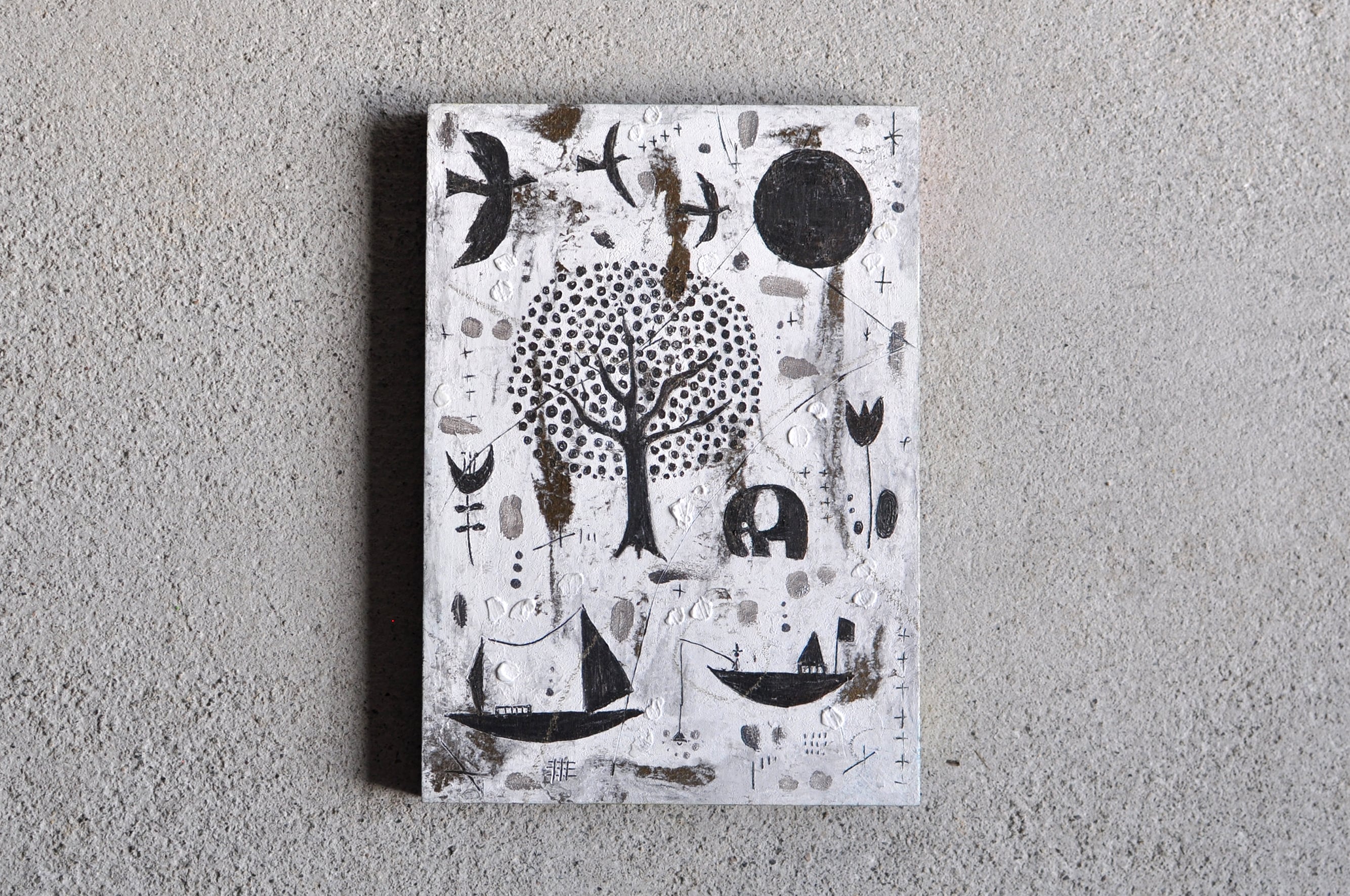 使用画材:木製パネル、アクリルガッシュ、クレパス