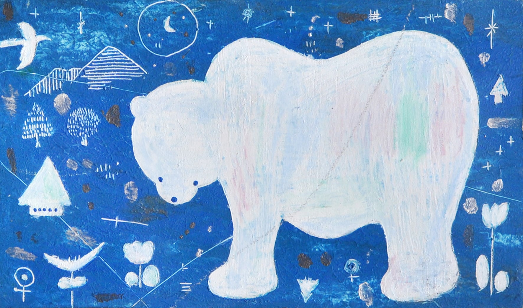 使用画材:木製パネル、アクリルガッシュ、クレパス