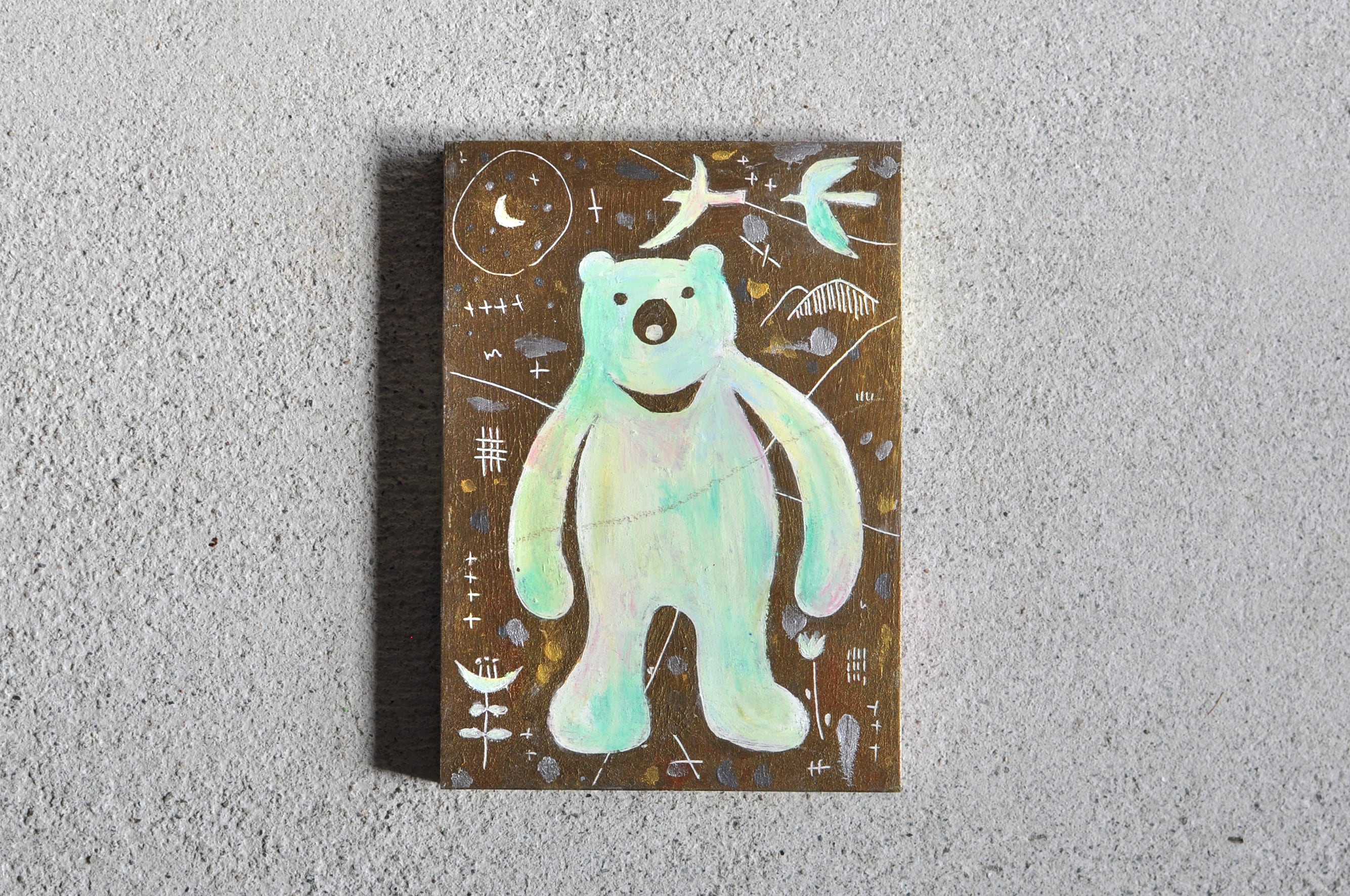 使用画材:木製パネル、アクリルガッシュ、クレパス