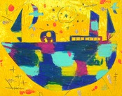 使用画材:木製パネル、アクリルガッシュ、クレパス