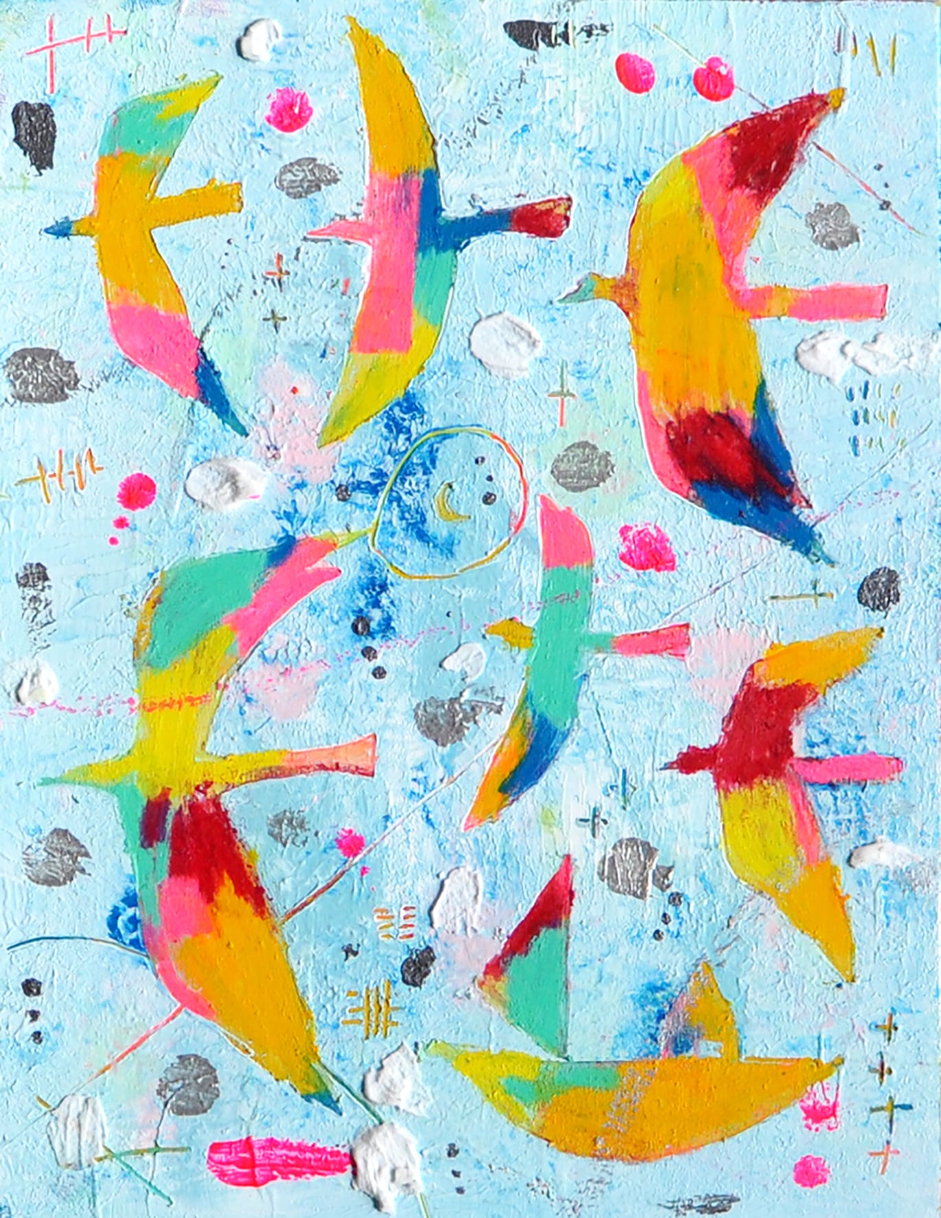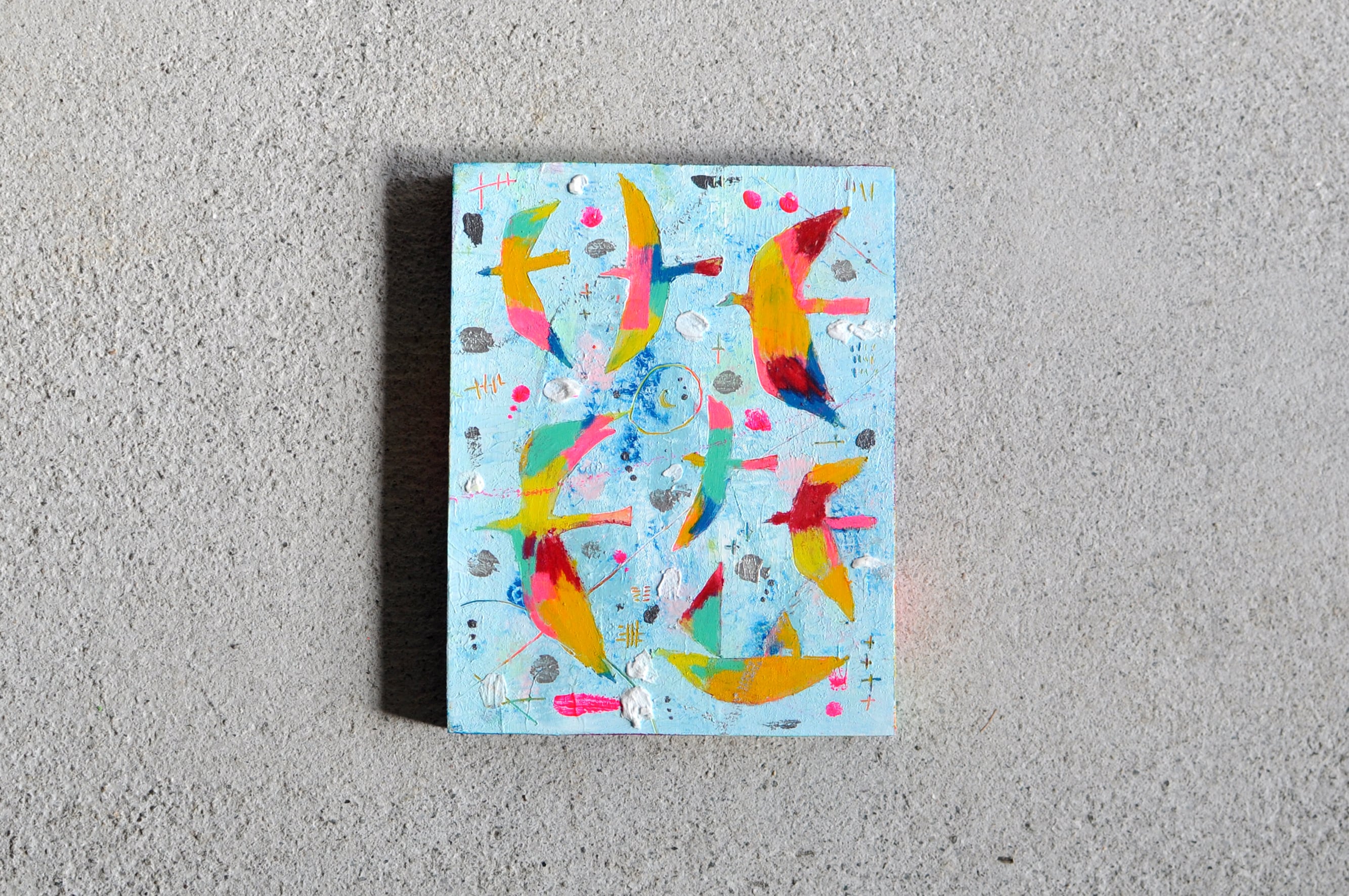使用画材:木製パネル、アクリルガッシュ、クレパス