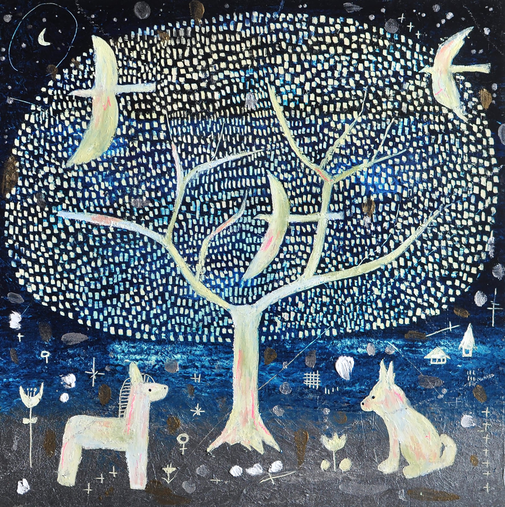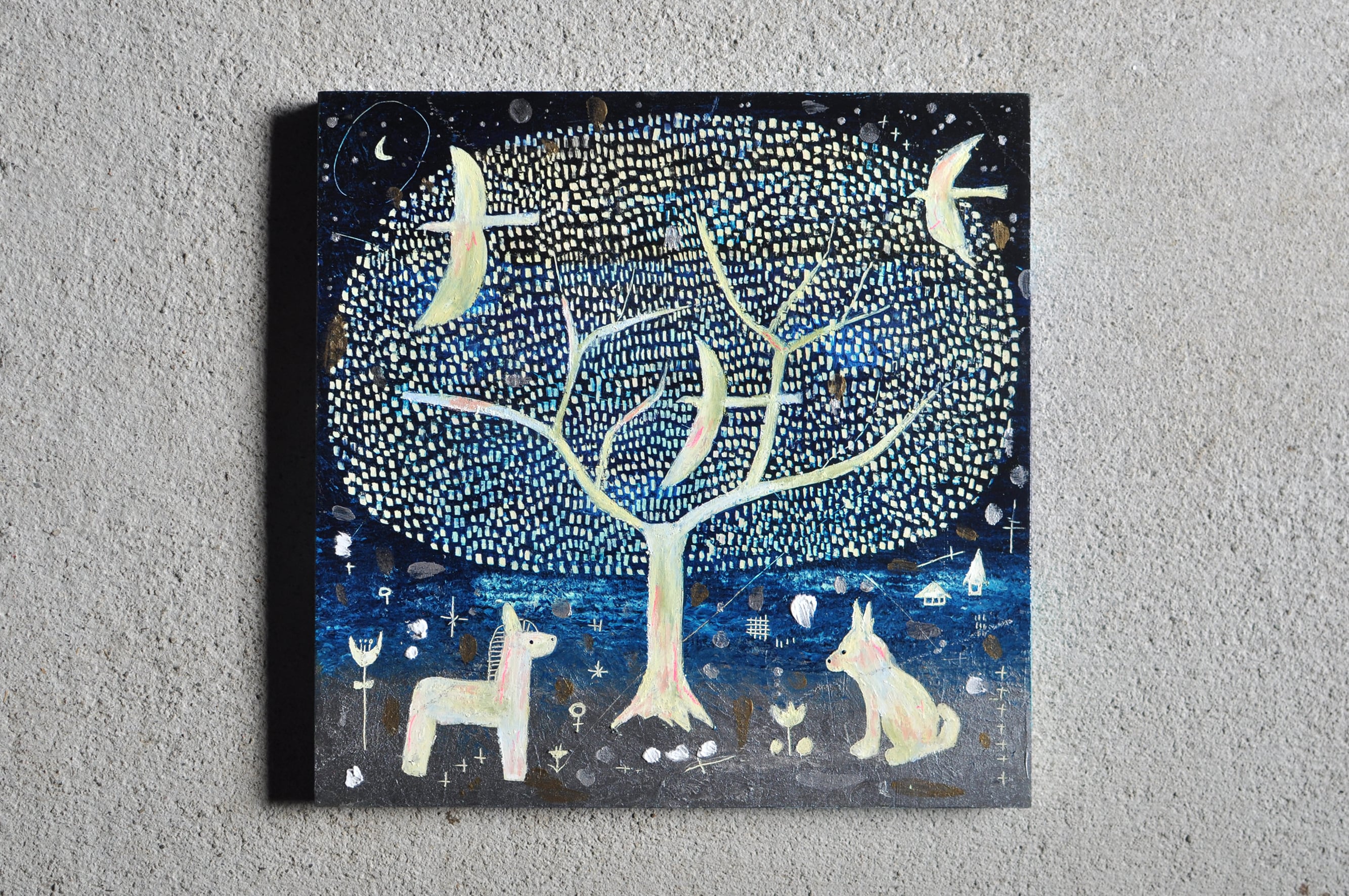使用画材:木製パネル、アクリルガッシュ、クレパス