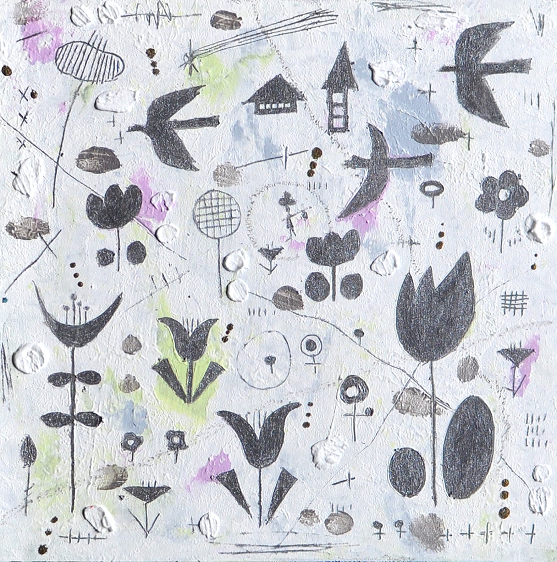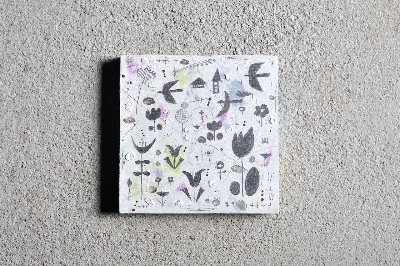 使用画材:木製パネル、アクリルガッシュ、クレパス