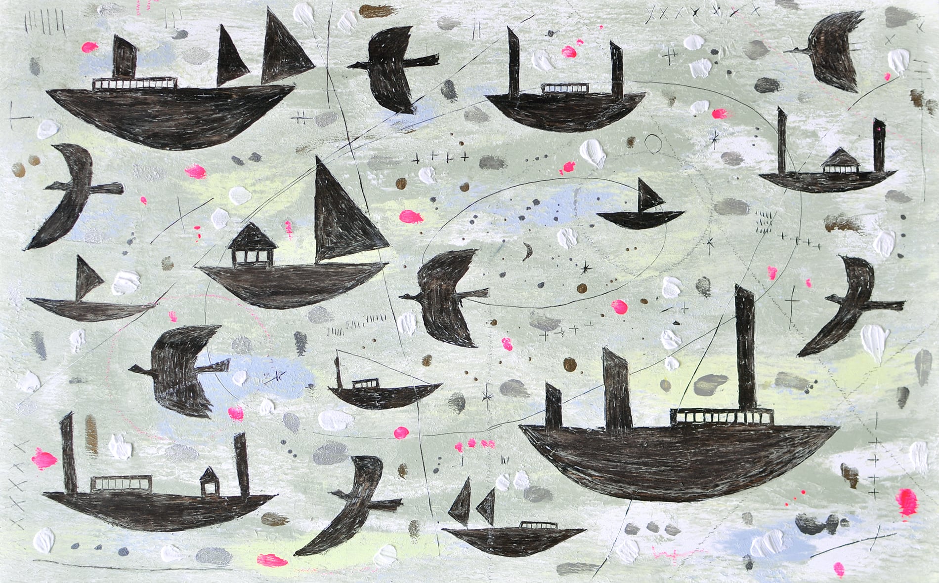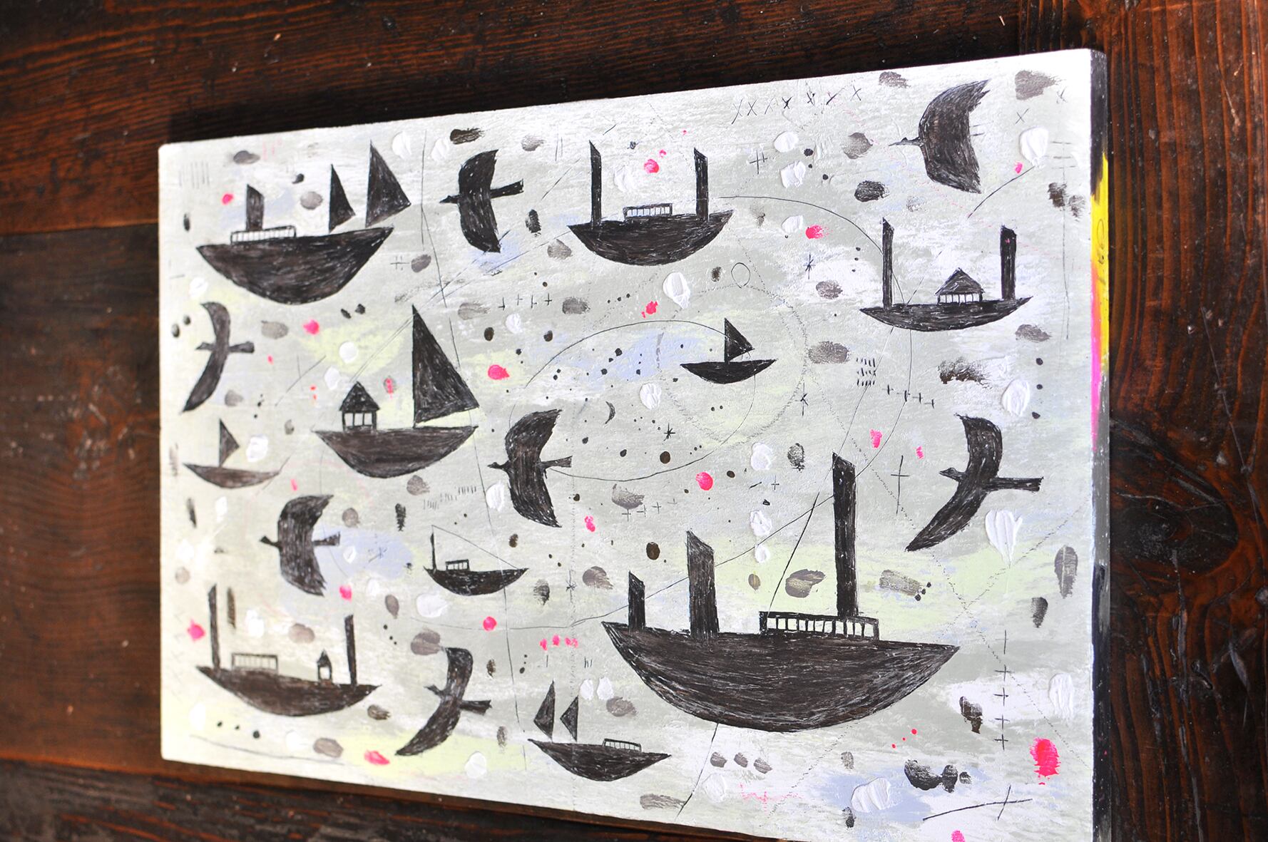 使用画材:木製パネル、アクリルガッシュ、クレパス