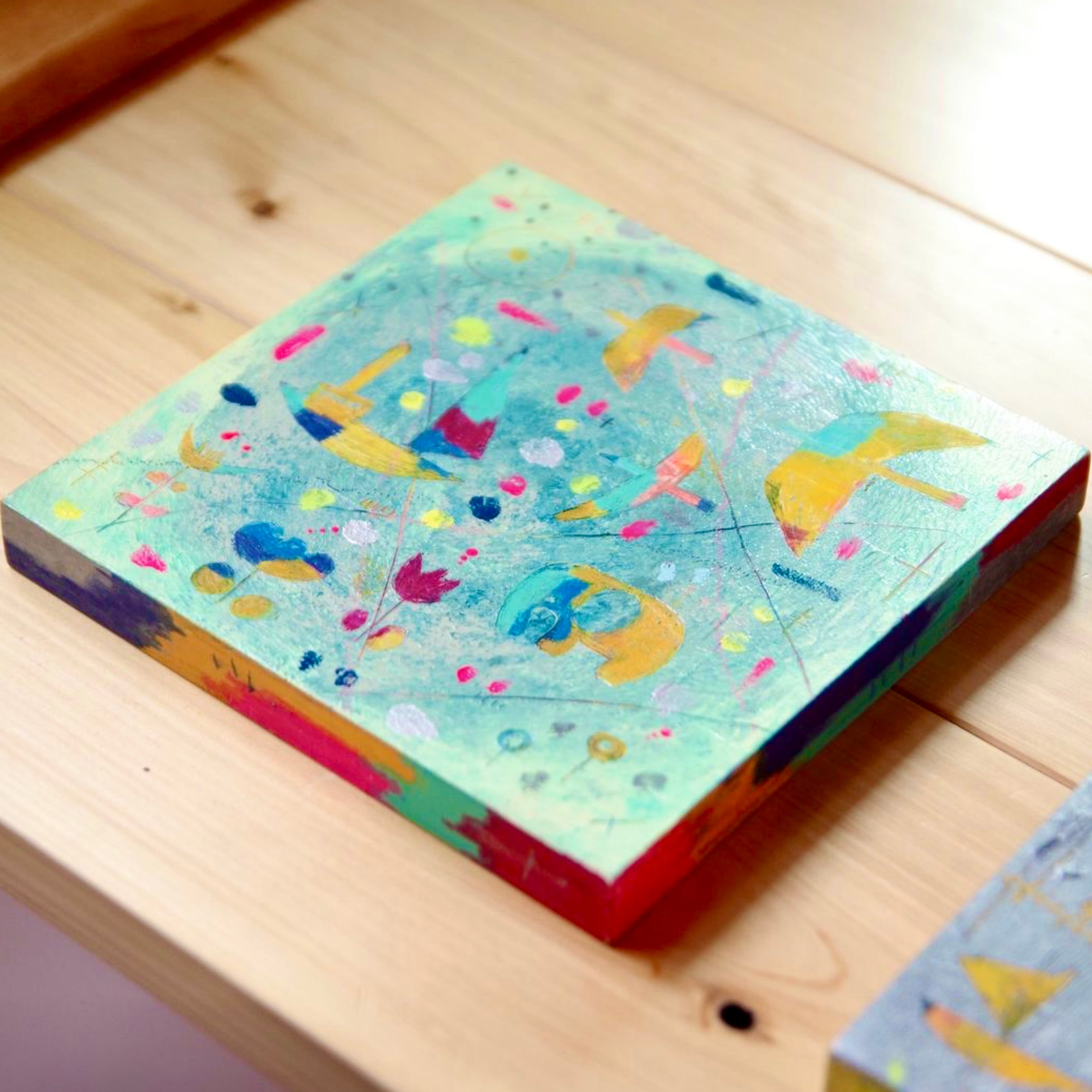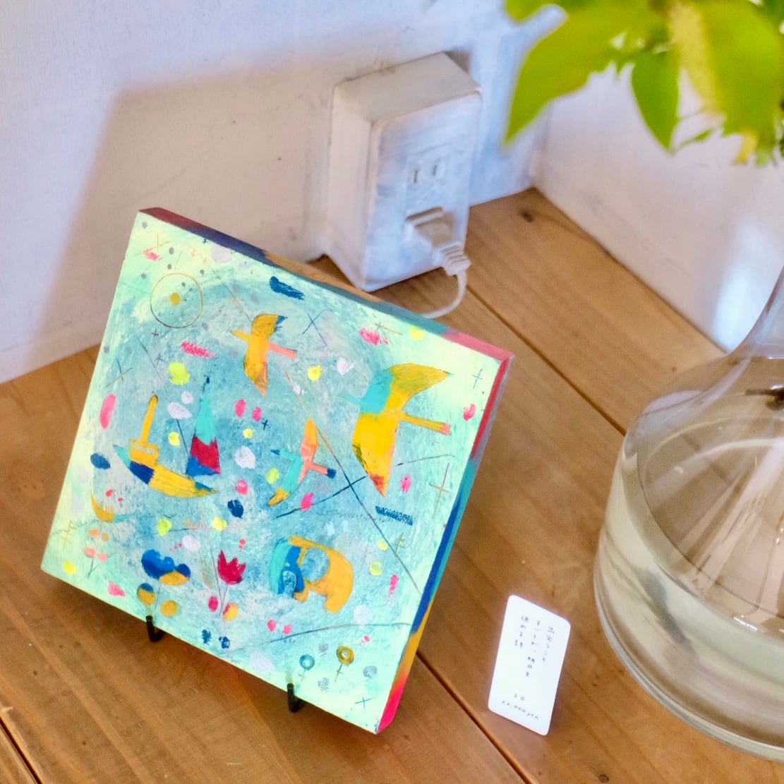 使用画材:木製パネル、アクリルガッシュ、クレパス