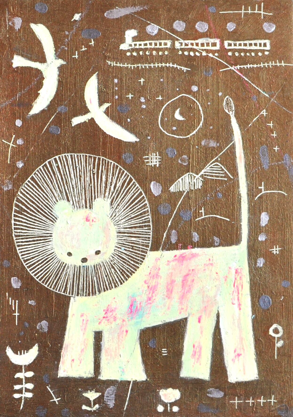 使用画材:木製パネル、アクリルガッシュ、クレパス